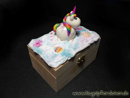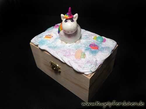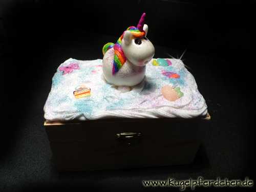 Wie immer sind auf den Produkt-Fotos sind nur Beispiele - Euer Einhorn und auch Eure Einhorn-Schatztruhe wird extra für Euch von Hand mit viel Liebe modelliert und hergestellt. Ein kleines Kunstwerk das es so kein zweites Mal gibt.