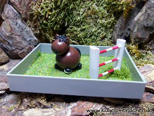 Dekobox mit Steilsprung. Die Box ist in einem Rechteck-Format gehalten und bietet Platz für bis zu zwei Kugelpferdchen. Oder eines, das ordentlich Anlauf braucht, um sein Sprungvermögen voll auszuschöpfen ;-)