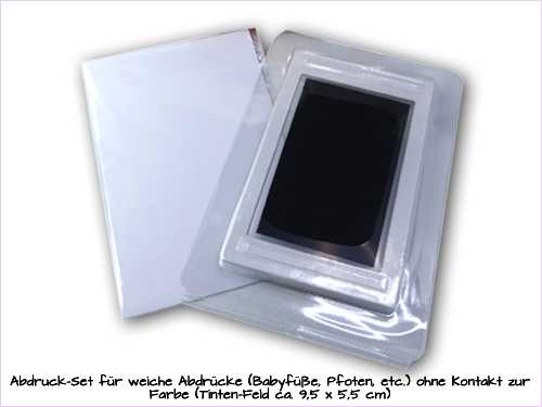 - Du erhältst ein Set, mit dem Du den Abdruck Deines Tieres nehmen kannst (bestehend aus einem Fläschchen mit Farbe (ungiftig und leicht abwaschbar), einem Schwamm , einer Anleitung und einem Paar Handschuhe (latexfrei).