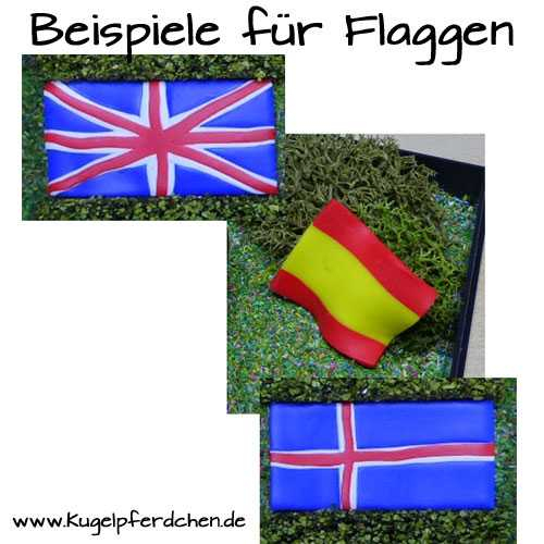 Die Bilder sind Beispiele, wie eine Flagge in einer Dekobox aussehen kann wenn ein Pferdchen dabei steht.