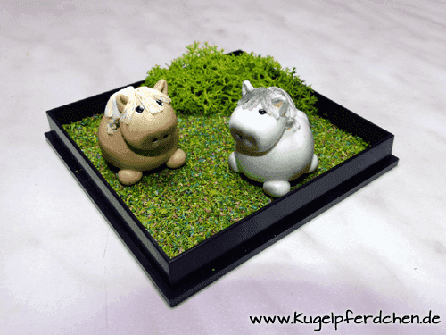 Szenario mit zwei Kugelpferdchen der Größe "Normal" in einer Landschaftsbox.