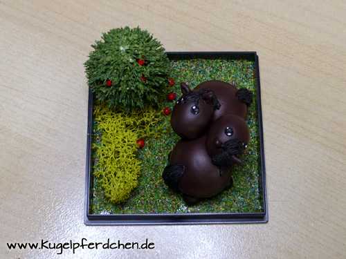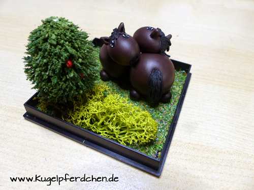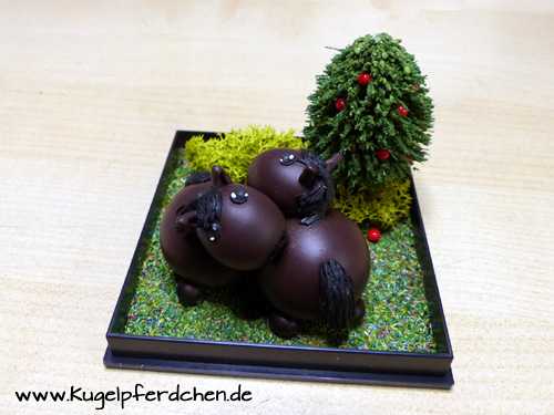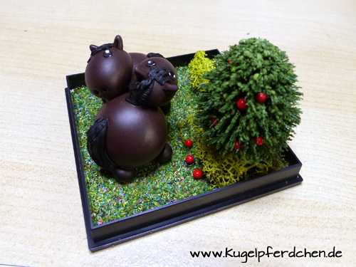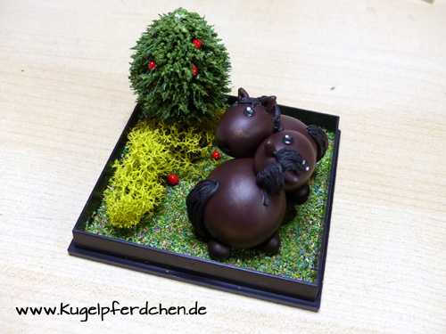 Wer ein Pferd hat, hatte oder einfach nur schön findet kann sich sein Kugelpferdchen nach Fotovorlage fertigen lassen, in diesem Fall als komplettes Szenario.