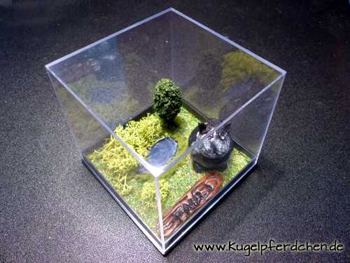 Hier fühlt sich Dein Kugelpferdchen wohl und ist durch die durchsichtige Haube außerdem vor Kugelpferdchen-Dieben (und Staub) geschützt. Die Box bietet Platz für bis zu zwei Kugelpferdchen.